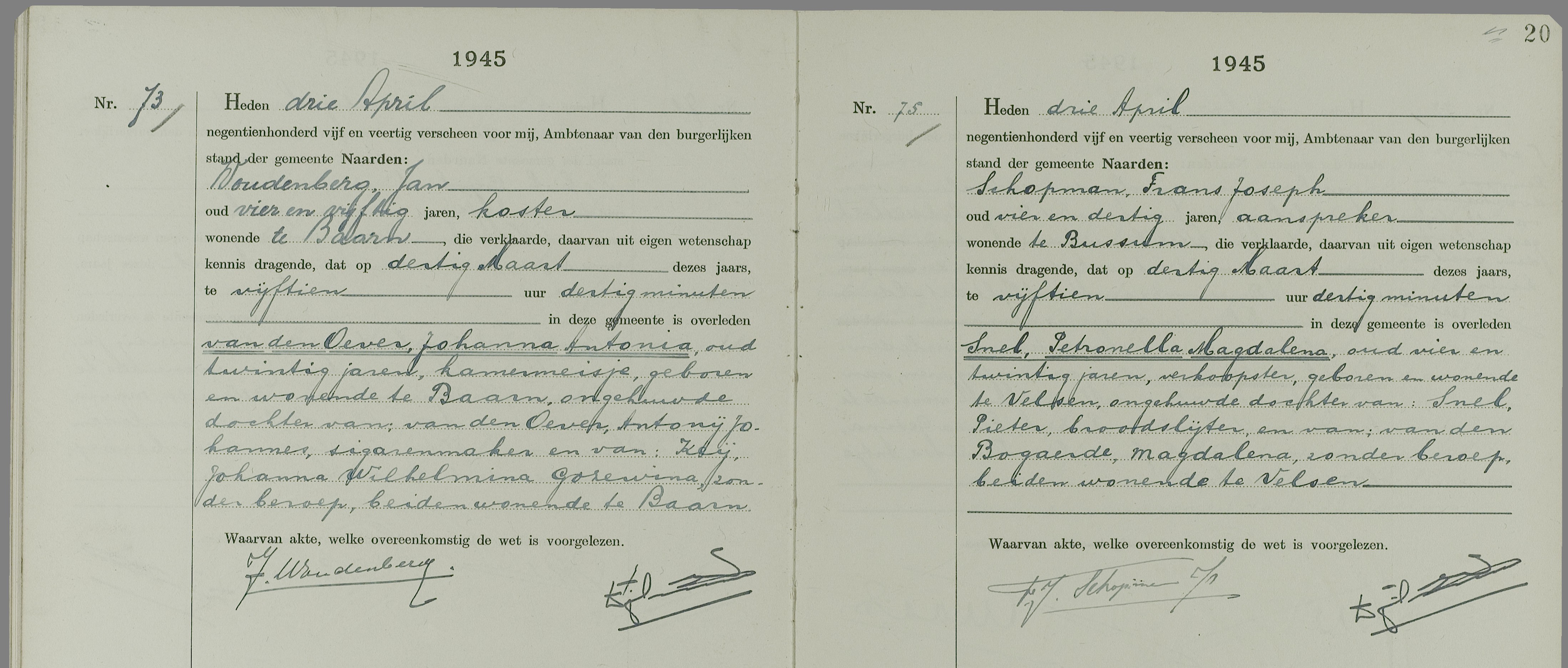 Overlijdensakten van de twee meisjes.