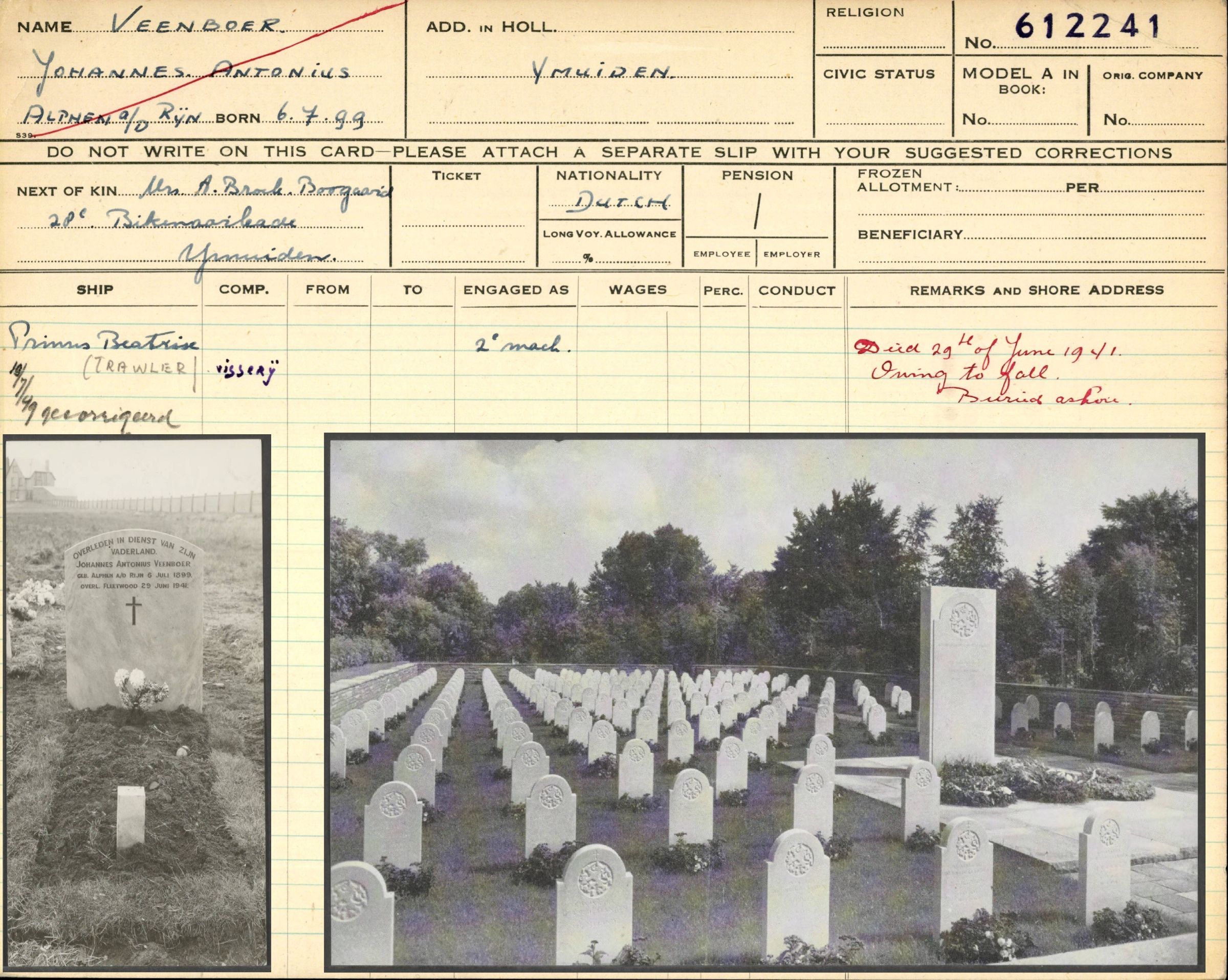 Johannes Antonius Veenboer is vermeld op het visserijmonument op de kop van de haven in IJmuiden.